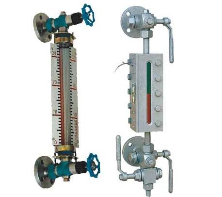 儀表上下閥門(mén)均裝有連接法蘭,法蘭接頭與被測(cè)容器焊接在一起而構(gòu)成連通器,從而在玻璃管上可直接顯示容器內(nèi)介質(zhì)液位的高度。
